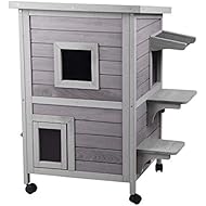 PawHut 2-Story Solid Wood Cat House Condo Shelter with ...