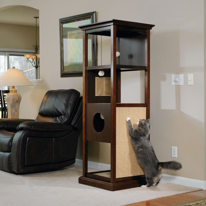 Sauder Pet Traditional Wood Cat Tower in Espresso | Bed ... (Brett Hodges) See more ideas about bookcase, furniture, cat furniture. Construct the main frame of the bookca. With durable, stylish cat condos, trees, towers and houses, you can give her a Cat condos and perches give anxious cats a place to curl up and nap in seclusion.